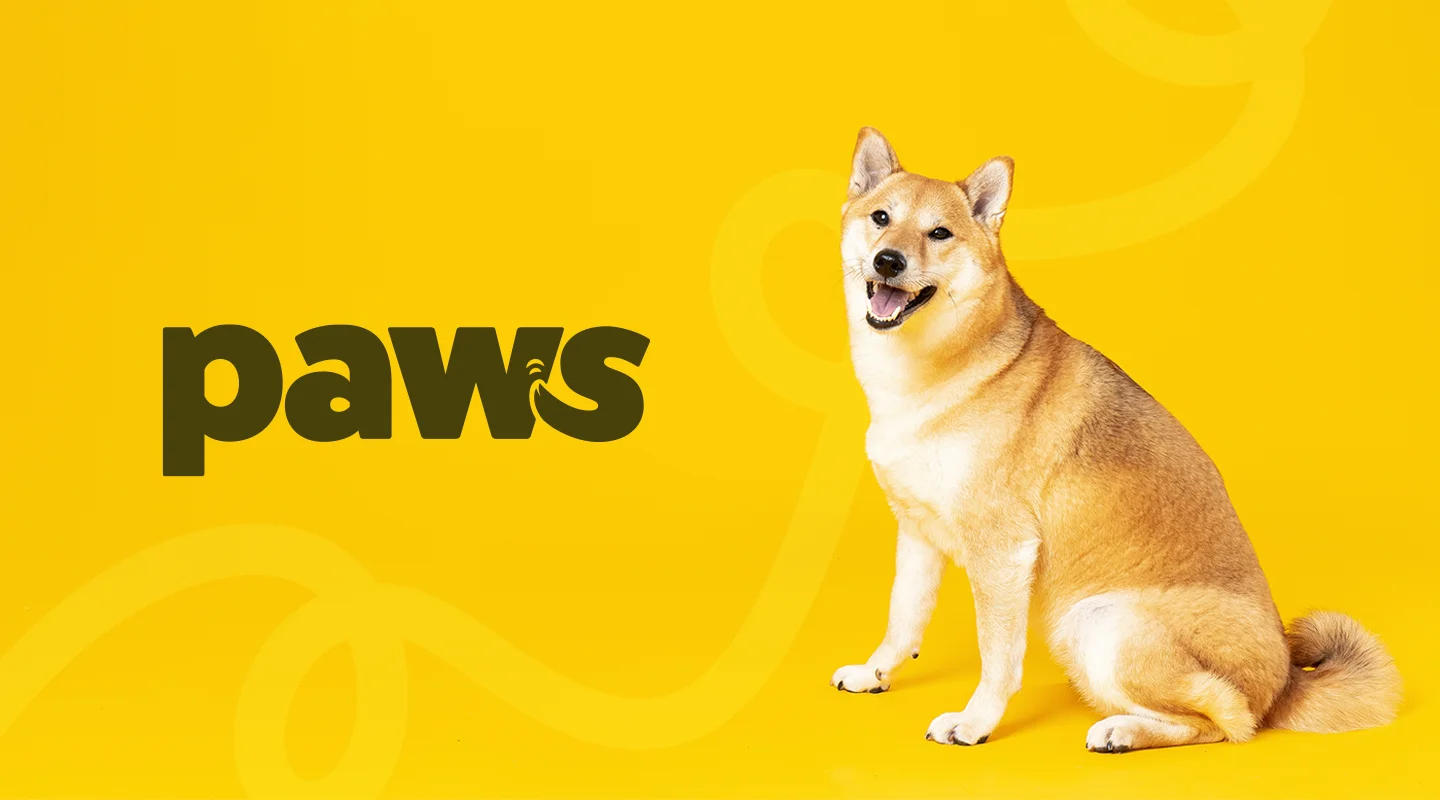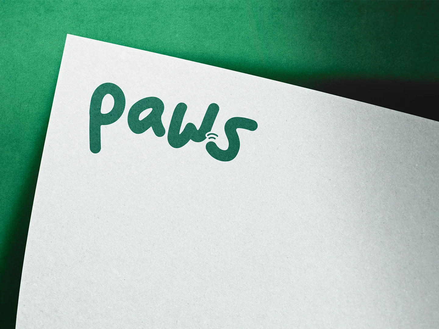 1. Bold, custom “PAWS” wordmark with the S extending into the W as a tail