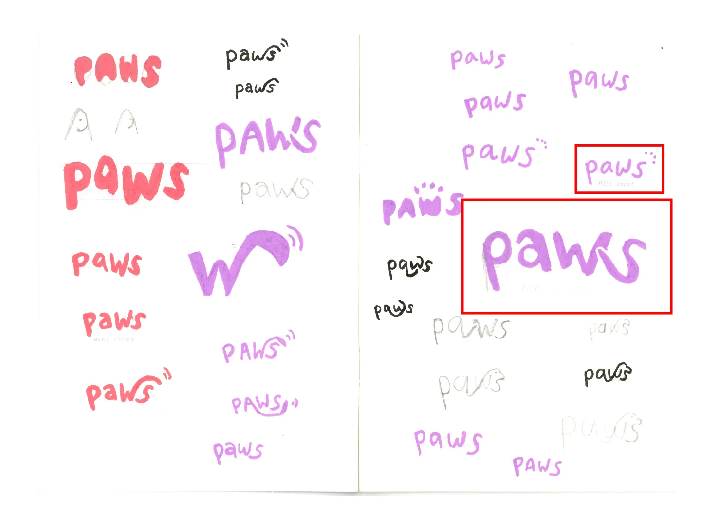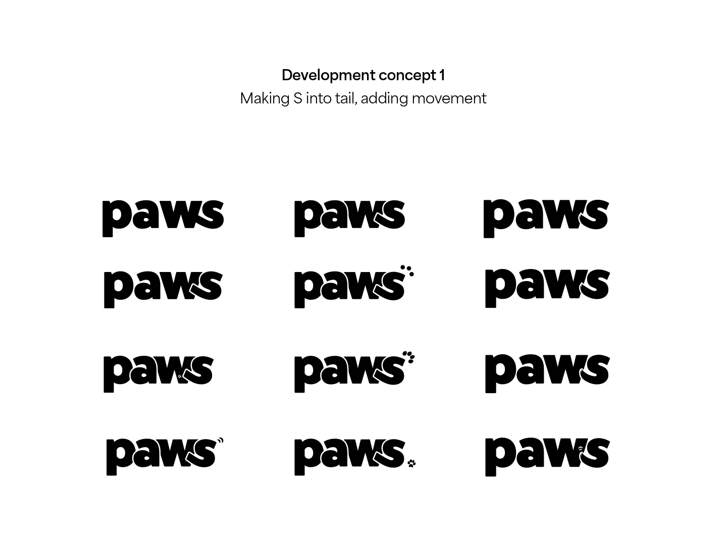1. Bold, custom “PAWS” wordmark with the S extending into the W as a tail
