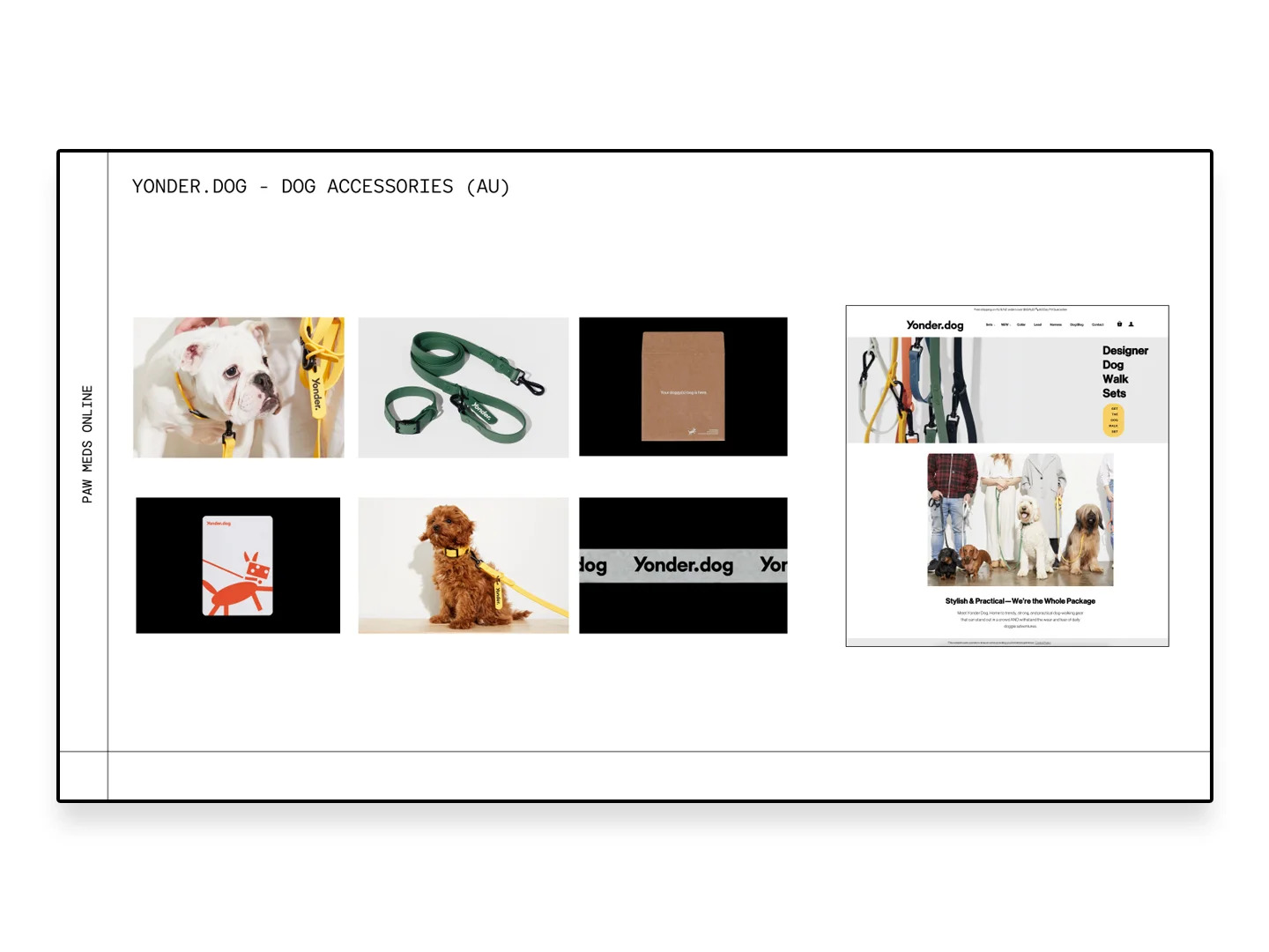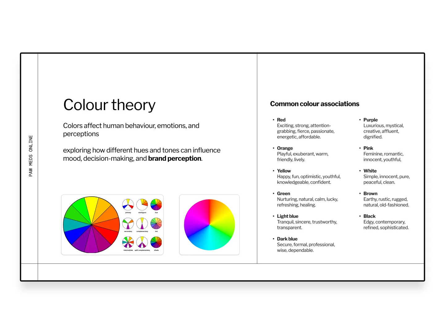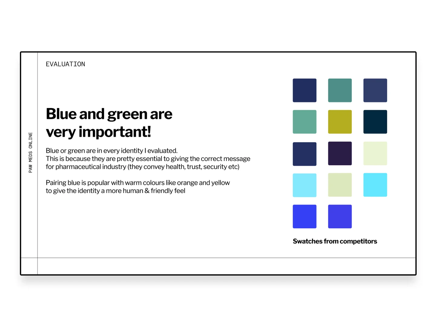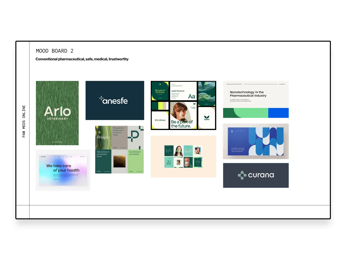 • Clear opportunity to create a premium, characterful identityI started with a stakeholder discovery session to define scope, audience, and tone. From there, I audited competitors in the online pet medication space and shared a visual analysis of trends in type, colour, and tone.