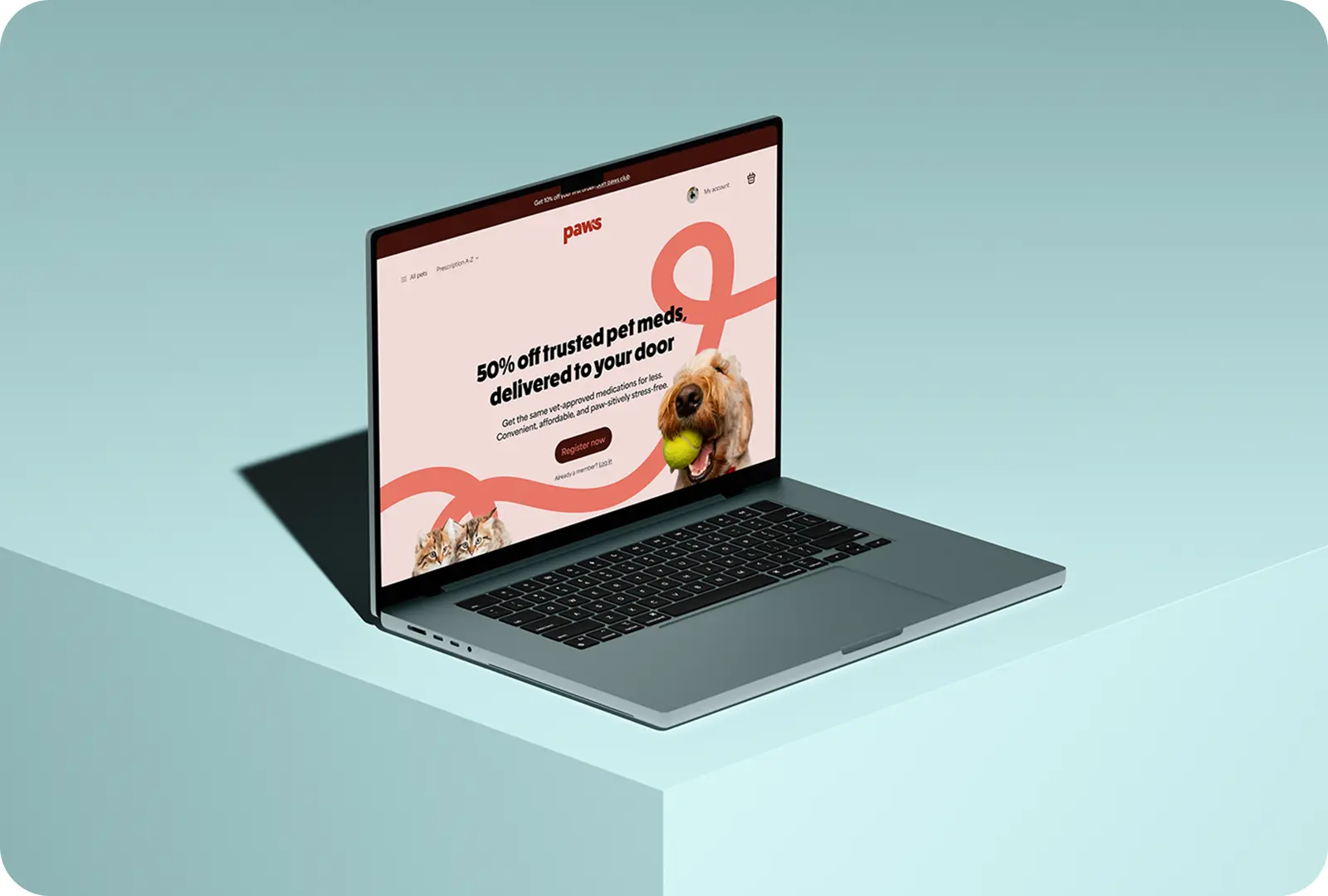 Paws is Refine Pharma’s new pet medication sub-brand aimed at younger, high-income pet owners. I created the brand identity, design system, and key UI layouts—now in development and receiving strong internal approval.