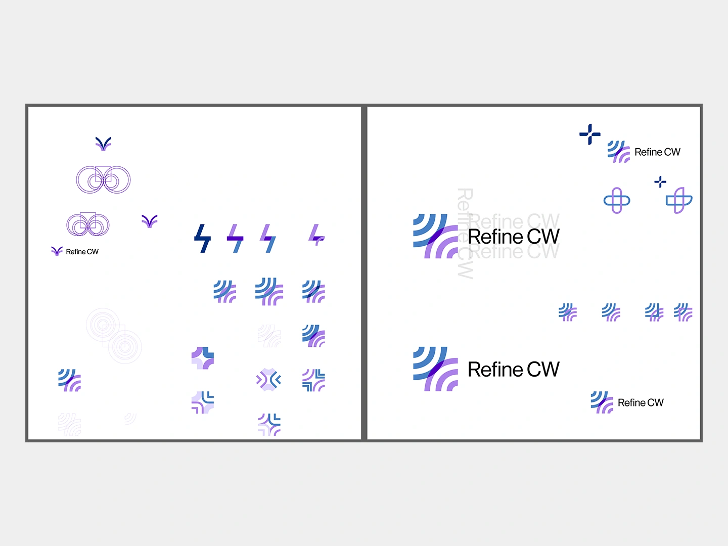 Initial concepts explored the Refine ‘slash’ that was recognisable to existing clients. This was important to get right because we did not want to alienate the larger clients we had already obtained. I also explored concepts with the pharma ‘plus’ icon.